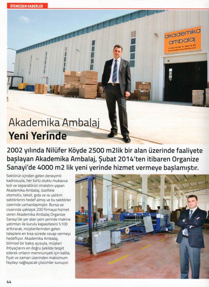 Bursa ve civarında yaklaşık 200 firmaya hizmet veren Akademika Ambalaj Organize Sanayi'de yer alan yeni yerinde makine yatımları ile kurulu kapasitesini %100 arttırarak, müşterilerinden gelen taleplere en kısa sürede cevap vermeyi hedefliyor.
