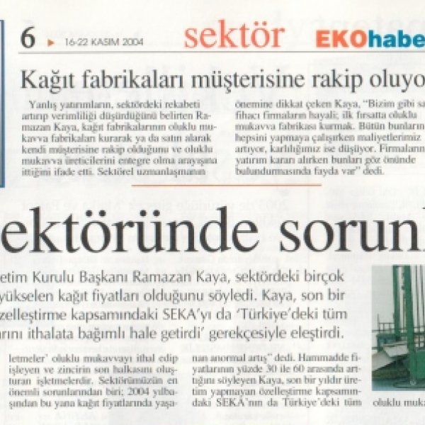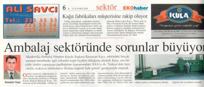 Akademika Ambalaj Chairman Ramazan Kaya, basing on many problems in the sector; said that the prices were soaring. Kaya criticized SEKA under the scope of privatization that did not produce for the past year as "making all corrugated cardboard factories in Turkey dependent on imports".